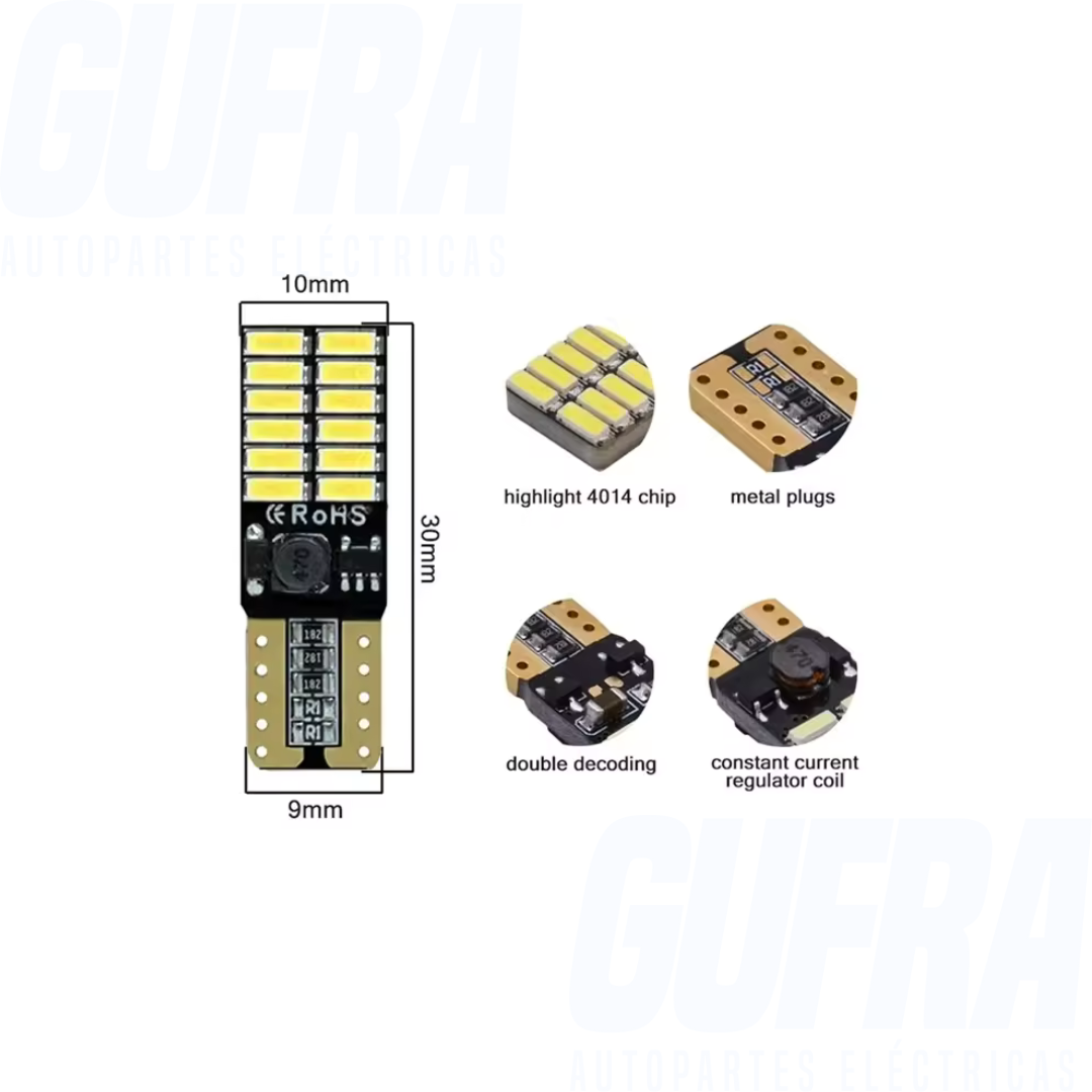 LAMPARA LED CANBUS T10 24 LED SMD 4014 12V ALTO BRILLO