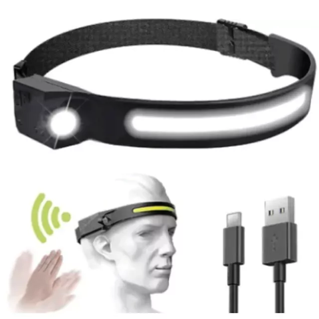 LINTERNA VINCHA LED BLANCO CON LINTERNA Y SENSOR