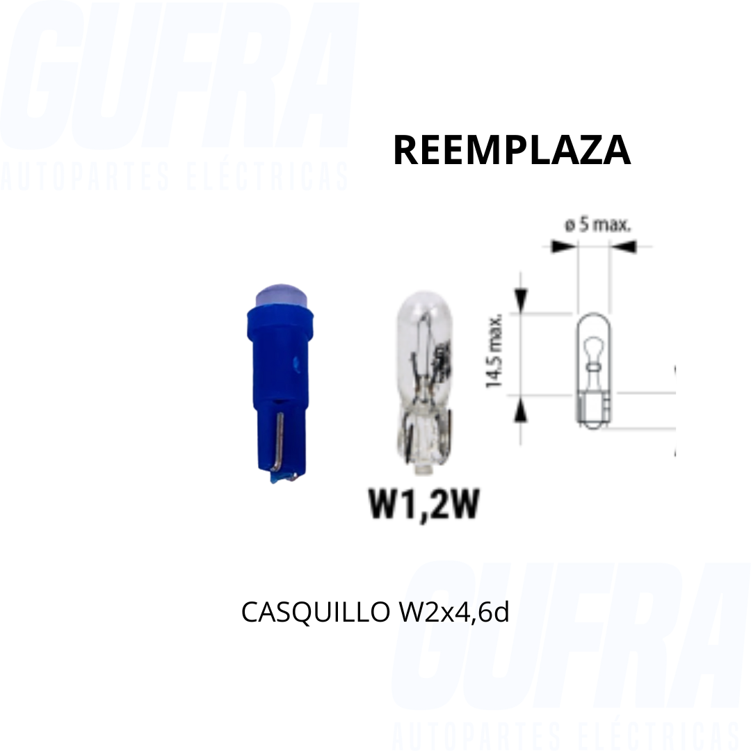 Reemplaza a lámpara: T5 2721 (casquillo W2x4,6d) De vidrio tablero piojito 1,2w y 2,1w